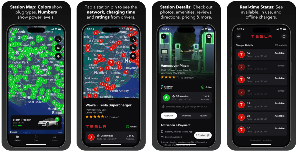 In addition to finding stations, Chargeway also allows you to plan trips based on battery, weather conditions, driving speed, and other factors. All this works even without built-in car navigation. The user-friendly interface allows you to add multiple cars, view charge data, and see where there is a cafe or store nearby so you don’t just wait at the outlet. It supports many networks in the US and Canada, but in Ukraine, the app can also be useful for planning trips abroad or navigating by type of charging.