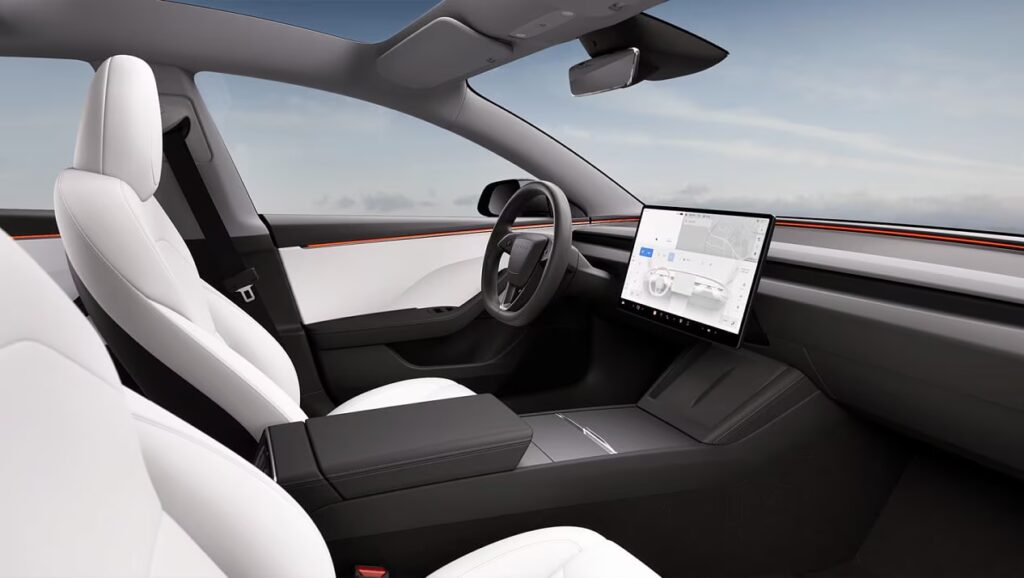 The Tesla Model 3 2023 has a minimalist interior design that focuses on functionality and comfort. The centrepiece is a 15-inch touchscreen that is used to control all of the car’s functions, including navigation, climate control and entertainment.